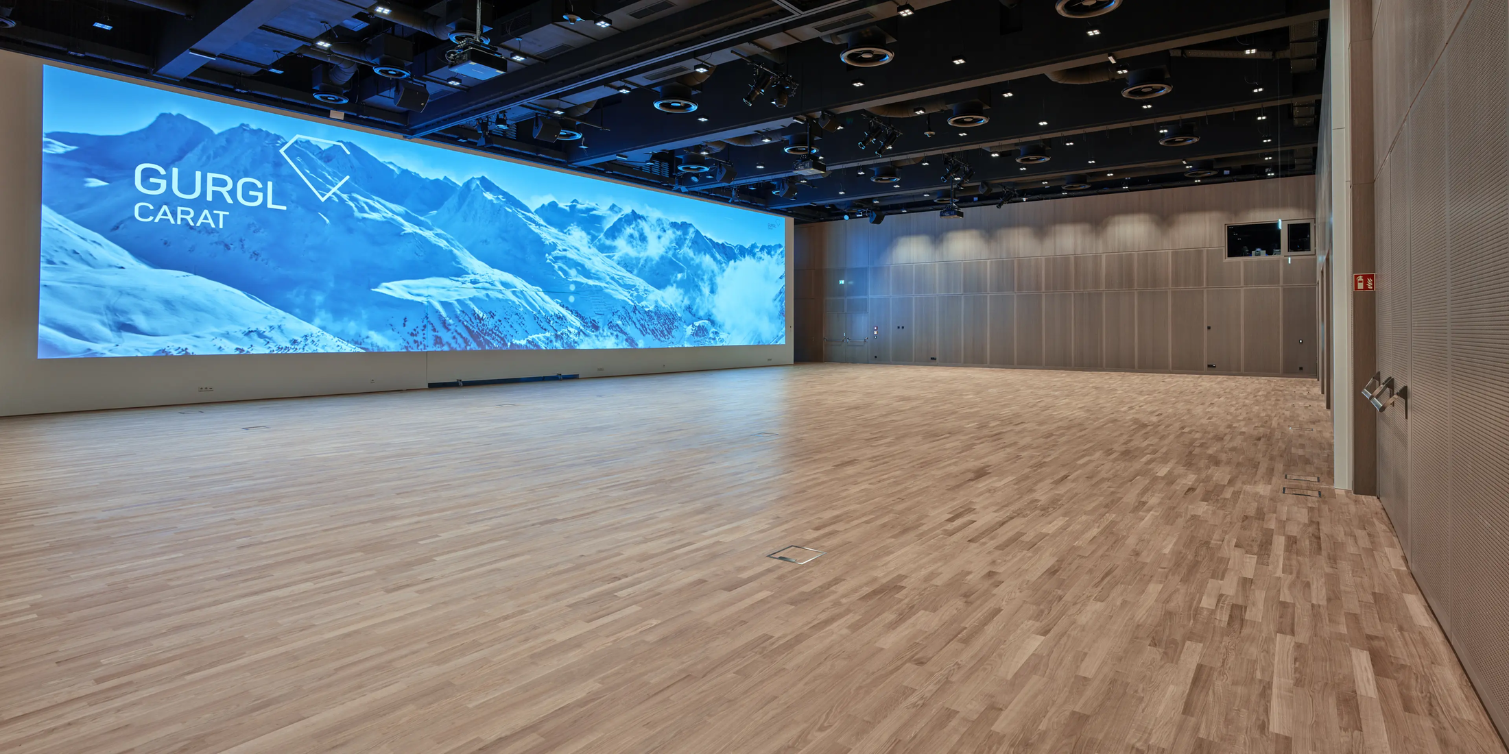 Große Kongresse, Bälle oder außergewöhnliche Produktpräsentationen – der Schalfkogel ist die ideale Wahl für Veranstaltungen mit vielen Personen. Der Seminarraum verfügt dank bodentiefer Fenster über Tageslicht, kann aber auch komplett verdunkelt werden. Das absolute Highlight ist die 100 m² große Front-Leinwand mit 21 m Breite und 5 m Höhe. Durch drei Full-HD Beamer wird ein konsistentes Bild erzeugt, dass es in dieser Qualität und Größe in ganz Österreich kein zweites Mal gibt. Das hochprofessionelle Boxen-System von L-Acoustics und die High-End Mikrofone von Shure runden das Leistungspaket gebührend ab. Eine mobile Bühne mit 40 m² und ein Rednerpult können flexibel nach Bedarf aufgestellt werden.